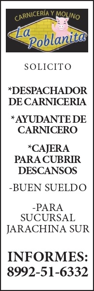 (logo) solicito: *despachador de carniceria *ayudande de carnicero *cajera para cubrir descansos... -buen sueldo -para suc jarachina sur informes 8992516332