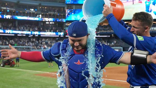 Los Blue Jays apalearon 10 carreras por 1 a los Yankees de Nueva York para tomar la ventaja en la Serie Divisional de la Liga Americana con los primeros dos cuadrangulares del receptor tijuanense en Postemporada como parte de una ofensiva que se desató en la parte final del encuentro.