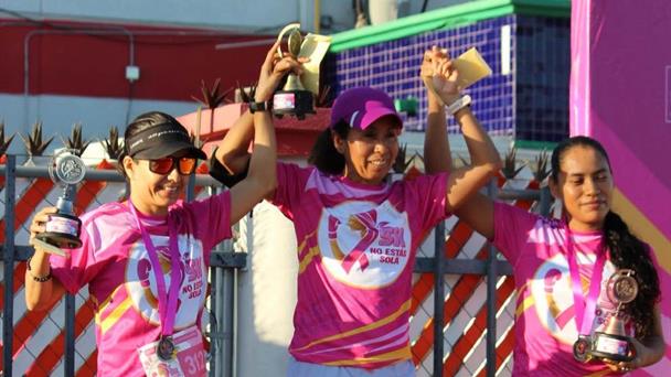 Adrián Gudiño y Nora Suárez fueron los primeros en cruzar la meta en sus respectivas categorías, pero las ganadoras fueron Beatriz Armijo, Beatriz Reyes, Martha Monforte y Antonia Contreras, quienes no están solas en esta lucha contra el cáncer.