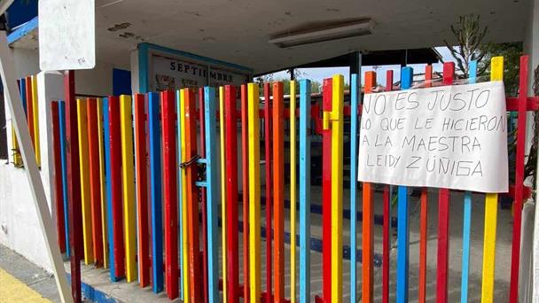 Madres de familia reclaman la inclusión de la maestra Leidy, a quien le impiden ingresar al jardín Josefa Ortiz de Domínguez