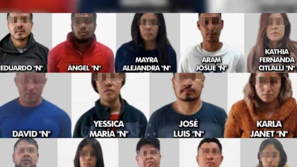 Las personas detenidas son Mayra Alejandra, Kathia Fernanda Citlalli, Yessica María, Vania Guadalupe, Karla Janet y María Guadalupe, así como Eduardo, Ángel, Aram Josué, Gilberto Esteban, David, José Luis, José Eduardo, Iván Humberto y Óscar Vicente.