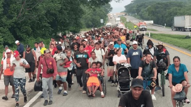 La caravana migrante, integrada en su mayoría por ciudadanos provenientes de Cuba, Venezuela, Haití, Colombia, Rusia, Guatemala, Honduras y El Salvador, partió de Tapachula hace 15 días, avanza por la carretera Costera.