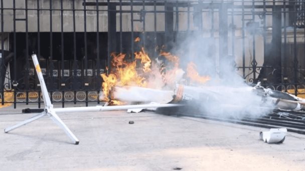 Sin embargo, al no llegar a un acuerdo en esa primera reunión cerraron la Avenida Reforma en ambos sentidos, destruyeron una cámara de seguridad en la zona y ahora están quemando cartones que apilaron encima de una reja.