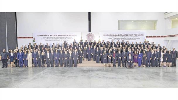 En un acto inédito e histórico, que fortalece al Estado, a las instituciones, y que marca el inicio de una nueva era de legalidad y justicia en Tamaulipas, el gobernador Américo Villarreal Anaya atestiguó la toma de protesta de las y los juzgadores que integran el nuevo Poder Judicial, y que convierte a Tamaulipas en unos de los primeros estados del país que elige a sus tres Poderes, democráticamente, por voto directo y secreto del pueblo.