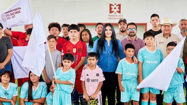 La alcaldesa Nataly García Díaz inauguró esta mañana la reposición del pasto sintético en la cancha de fútbol rápido del Vivero. Acompañada del secretario de Ayuntamiento Joselino Grosso Espinoza, el director de deportes Alfredo Rosales, integrantes del H. Cabildo, funcionarios municipales, madres de familia y pequeños deportistas, la alcaldesa dio la patada inicial acertando el tiro a gol, quedando inaugurada de manera oficial esta obra de beneficio colectivo. 'Para que nuestros niños, jóvenes y adultos deportistas cuenten con una cancha más segura minimizando el riesgo de accidentes, realizamos esta y otras obras de mejoramiento de espacios deportivos, gracias a la confianza de los contribuyentes que cumplen con el pago del impuesto predial. ¡Cuidemos nuestros espacios para tener un entorno bonito y seguro para las prácticas deportivas! Gracias también al gran equipo de la Dirección de Deportes por su labor! Con espacios seguros y un entorno sano, seguimos avanzando en la transformación de nuestro municipio, orgullo nacional y estatal en todo tipo de deportes!
