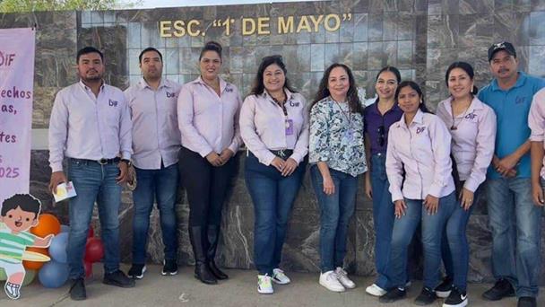 El Sistema DIF Municipal, encabezado por la Lic. Nallely García Díaz, visitó la Escuela Primaria Primero de Mayo para llevar a cabo la Feria de los Derechos de las Niñas, Niños y Jóvenes: "Vive Tus Derechos 2025", una iniciativa orientada a fortalecer el conocimiento y la práctica de los derechos de la infancia, así como promover valores esenciales para su desarrollo.