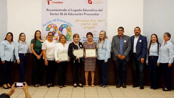 En la celebración del 20 Aniversario del Sector 16 de Educación Preescolar, se llevó a cabo el reconocimiento a todas las educadoras que han contribuido en gran medida en la formación inicial de ciudadanos en esta región de Tamaulipas, sirviendo con pasión, entrega y esperanza.