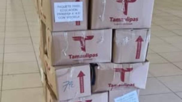 Durante la tarde del sábado se estuvieron descargando más de 8 mil paquetes de útiles escolares para los alumnos de educación básica de la Frontera Chica.