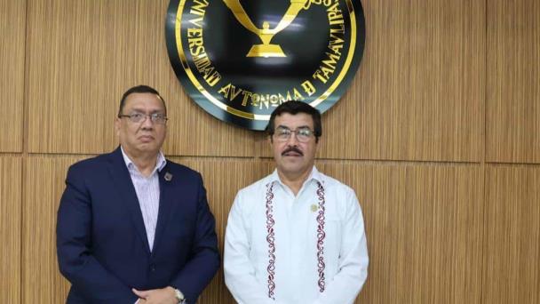 El rector de la Universidad Autónoma de Tamaulipas (UAT), Dámaso Anaya Alvarado, sostuvo una reunión con el delegado estatal del Instituto Mexicano del Seguro Social (IMSS), José Luis Aranza Aguilar, con el propósito de consolidar acciones conjuntas que fortalezcan la atención y el bienestar de la comunidad universitaria en la región de Nuevo Laredo.