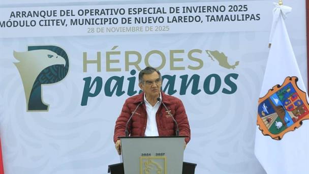Al dar el banderazo de inicio del Operativo Especial Invierno 2025 del Programa "Héroes Paisanos", en la explanada del módulo de Control de Importación e Internación Temporal de Vehículos (CIITEV) del Puente Internacional Juárez-Lincoln, Américo Villarreal aseguró que los miles de paisanos que llegan a través de esta frontera tamaulipeca van a encontrar autoridades diligentes, honestas y dispuestas, que se han coordinado entre los tres órdenes de gobierno para acompañar su retorno brindando seguridad, toda clase de servicios y la atención que se merecen.