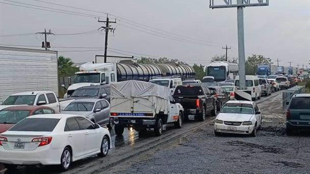 Desde las 13:20 horas, los automovilistas que transitaban de sur a norte, rumbo a las localidades del norte del estado de Tamaulipas, se quedaron "entrampados" al no existir un carril libre para desfogar el embotellamiento que prevalece en el lugar hasta las 17:15 horas.