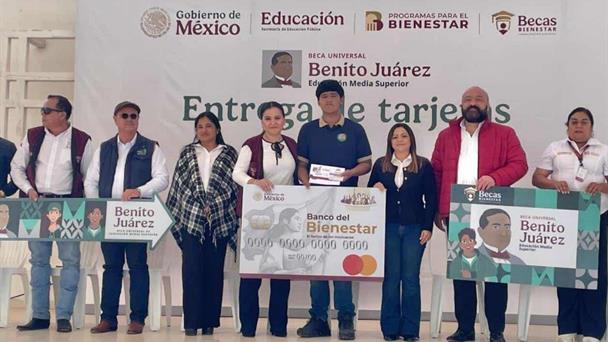 Estudiantes recibieron las tarjetas bancarias donde recibirán los apoyos económicos de La Beca Universal "Benito Juárez".