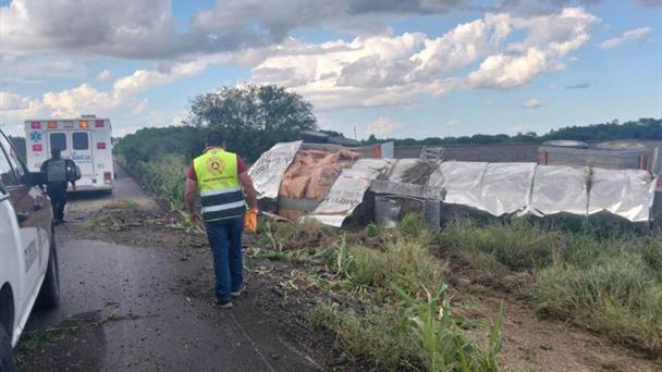 Vuelca contenedor de pipa cargado de jugo de naranja