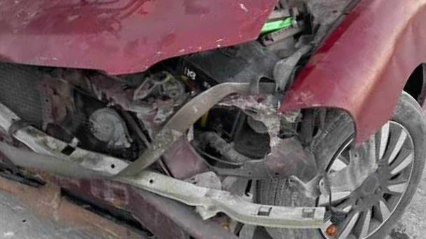 Así quedó el pequeño vehículo de la marca Toyota que fue chocado ayer en ma mañana afuera d euna tienda en la calle Sexta y Juárez.