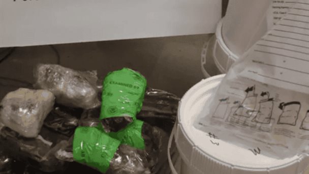 Los oficiales descubrieron varios paquetes que contenían 67.1 libras de metanfetamina y 42.5 libras de heroína negra.