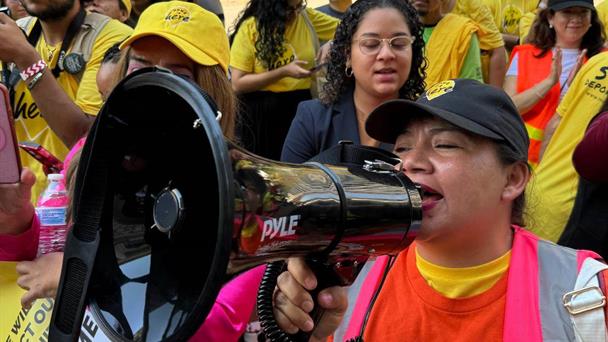 Claudia Valdivia, activista partidaria del DACA, en una protesta frente a los tribunales en Nueva Orleans.
