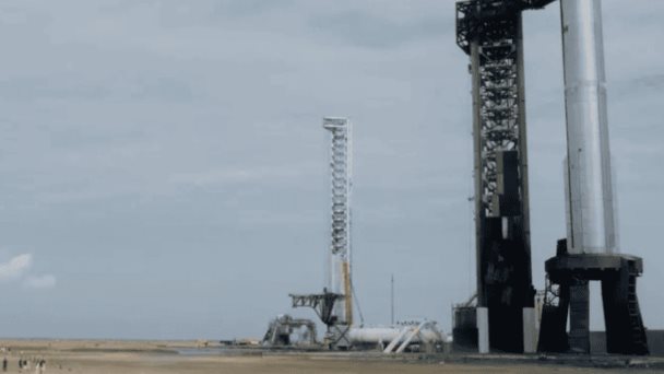 La nave espacial SpaceX Starship se ve en la plataforma de lanzamiento antes de una décima prueba de vuelo, en Starbase, Texas.
