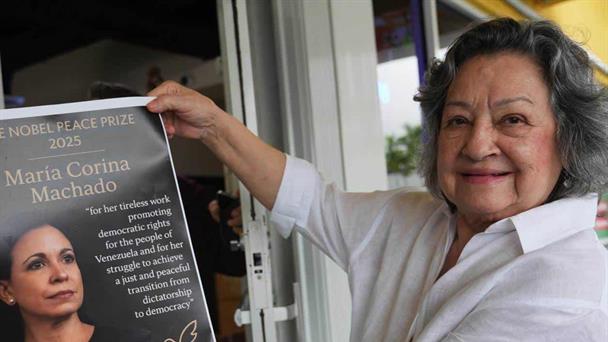 DORAL, Florida.- Los residentes en la "Pequeña Venezuela", la comunidad más grande de nativos del país sudamericano en Estados Unidos, reciben la noticia del Nobel de la Paz a la líder opositora María Corina Machado con sentimientos encontrados, ante las amenazas de deportación que se ciernen sobre ellos.