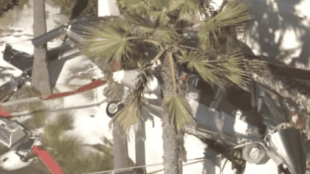 Dos personas a bordo del helicóptero fueron rescatadas sanas y salvas de los restos, informó la policía. La aeronave sobrevolaba a baja altitud sobre la playa mientras los visitantes observaban confundidos. Un video grabado por un bañista mostró el helicóptero en picada, estrellándose en la cuadra 21500 de Pacific Coast Highway. Varias palmeras parecen haber amortiguado la caída.