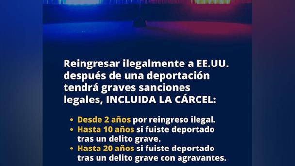 "Reingresar ilegalmente a los Estados Unidos después de haber sido deportado tiene graves consecuencias legales, incluida la cárcel.