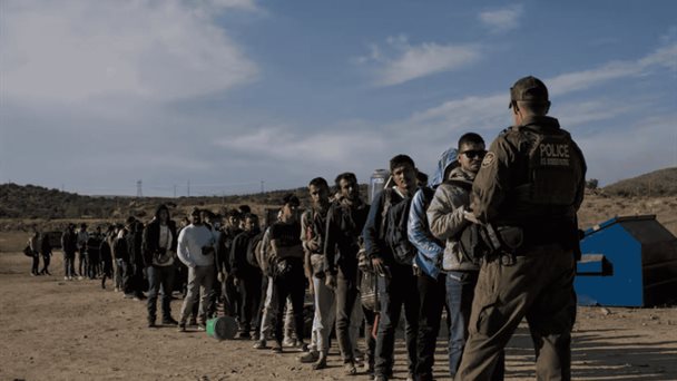 Un grupo de migrantes detenidos en California, en mayo de 2024.