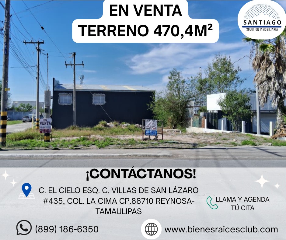 terreno en venta 470, 4m2 calle el cielo esq c villas de san lorenzo #435 col la cima cp 88710.. 8991-866350