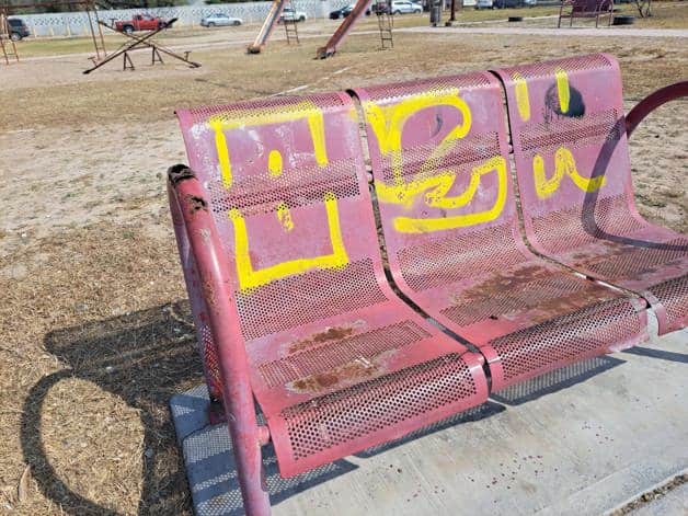 Las pocas bancas que hay ahí además de estar despintadas, presentan ralladuras, como la de la gráfica.