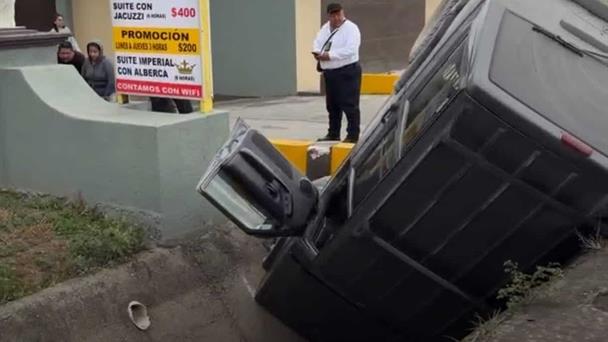 El vehículo terminó en un canal pluvial frente a un motel